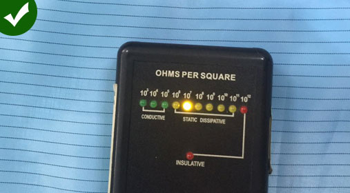 易合通產品采用5MM條紋面料導電綢防靜電值能達106-109次方,持久性防靜電,耐清洗次數:100次左右,兼有阻燃、防油性能